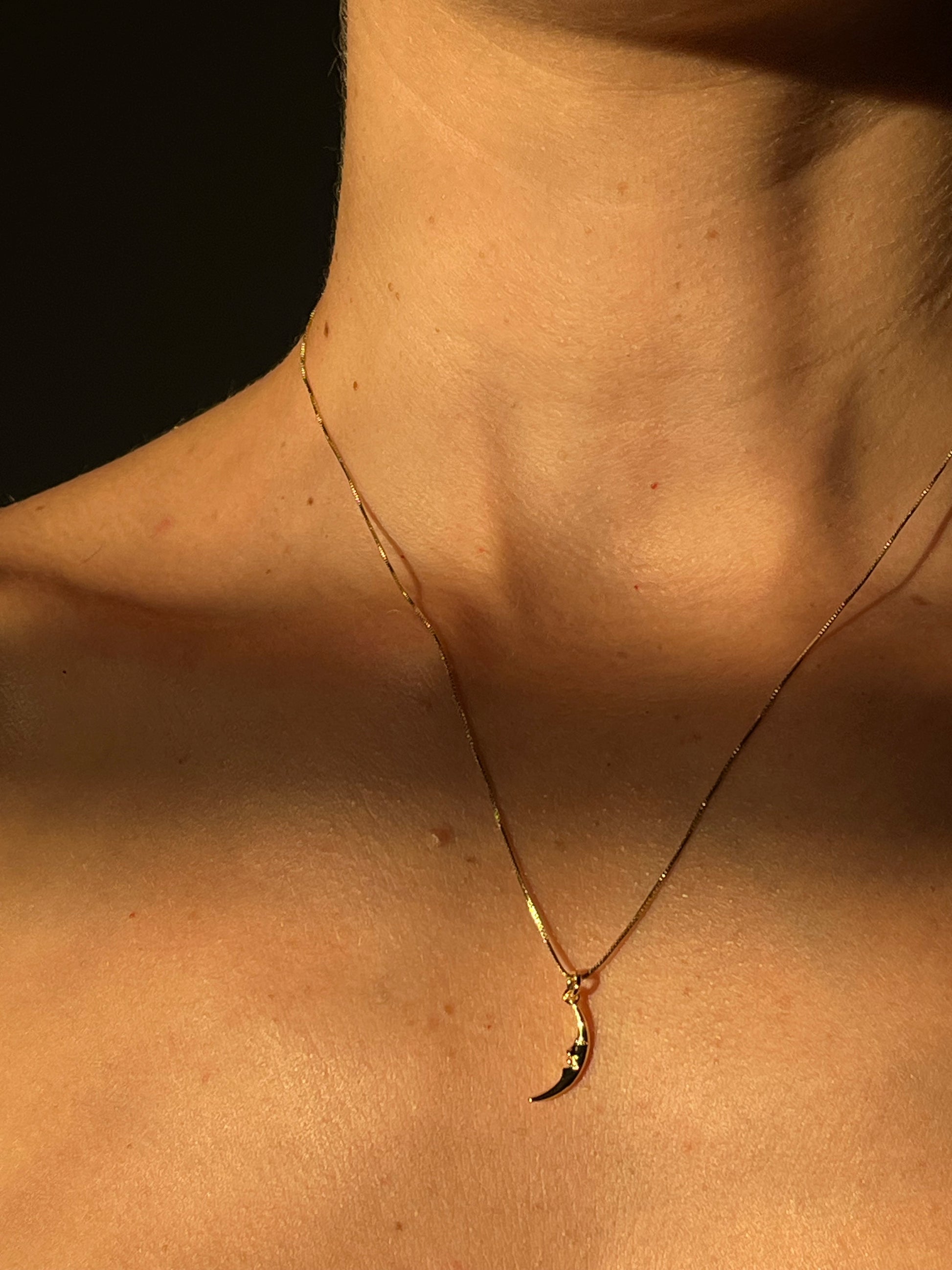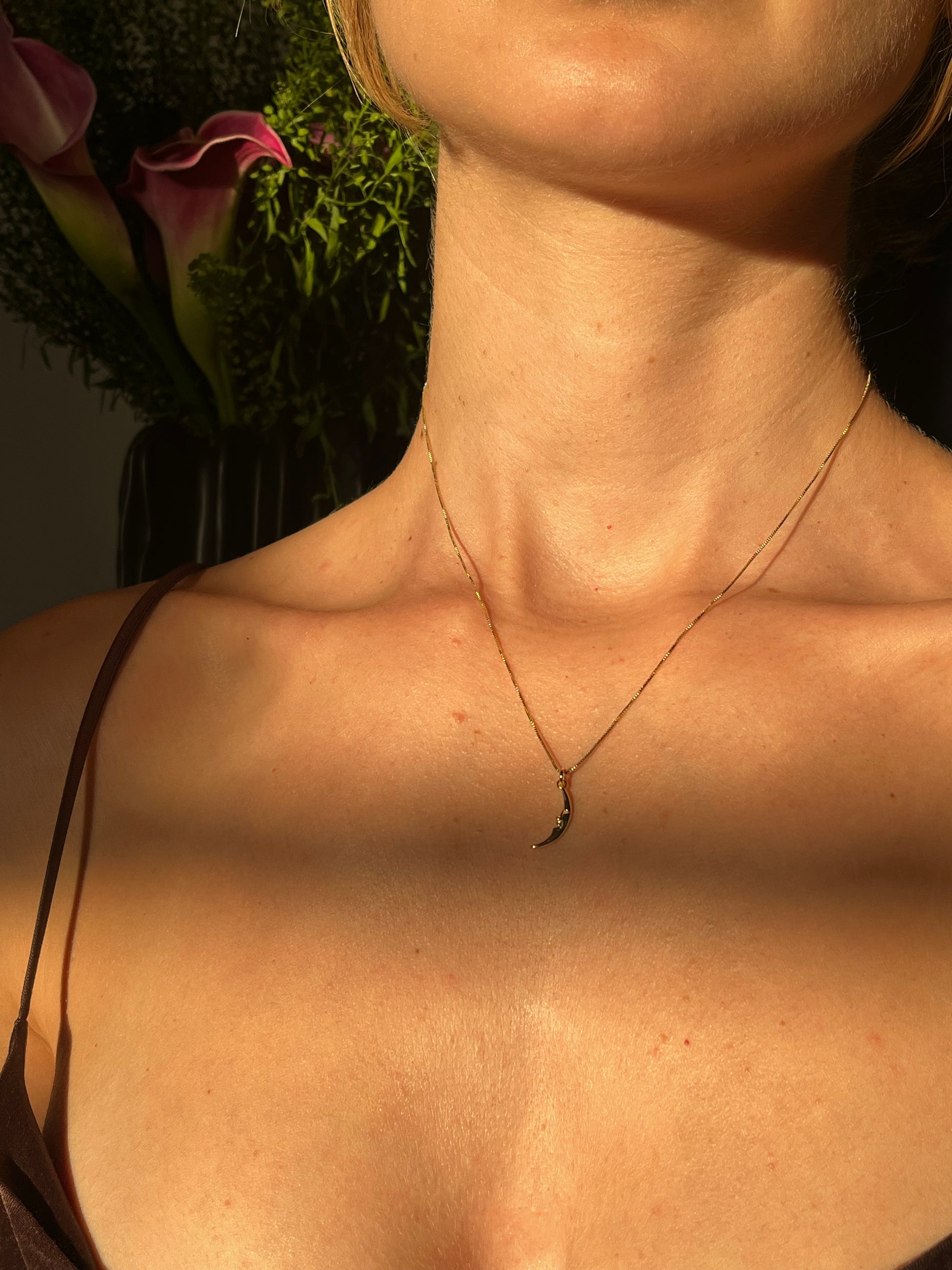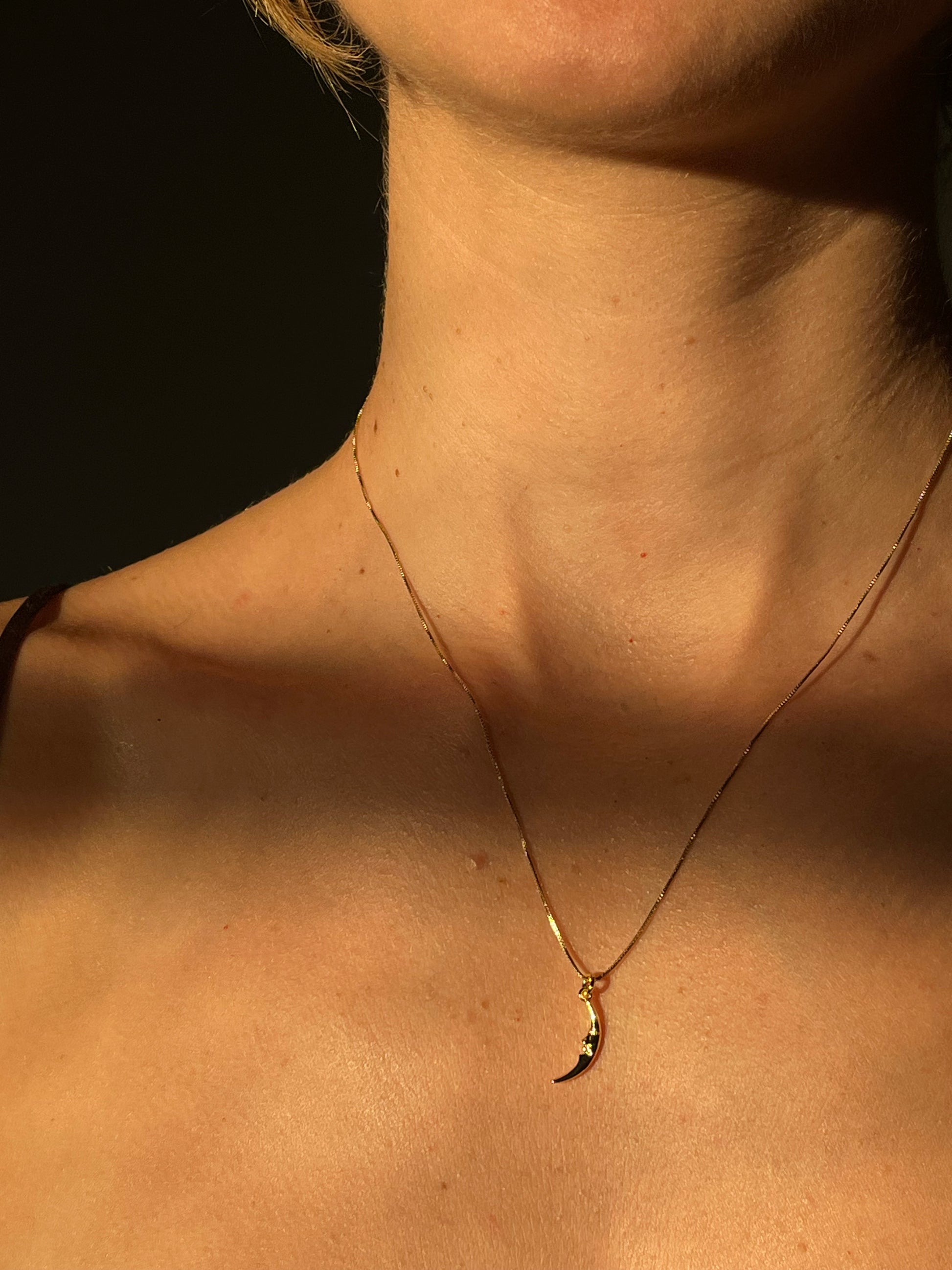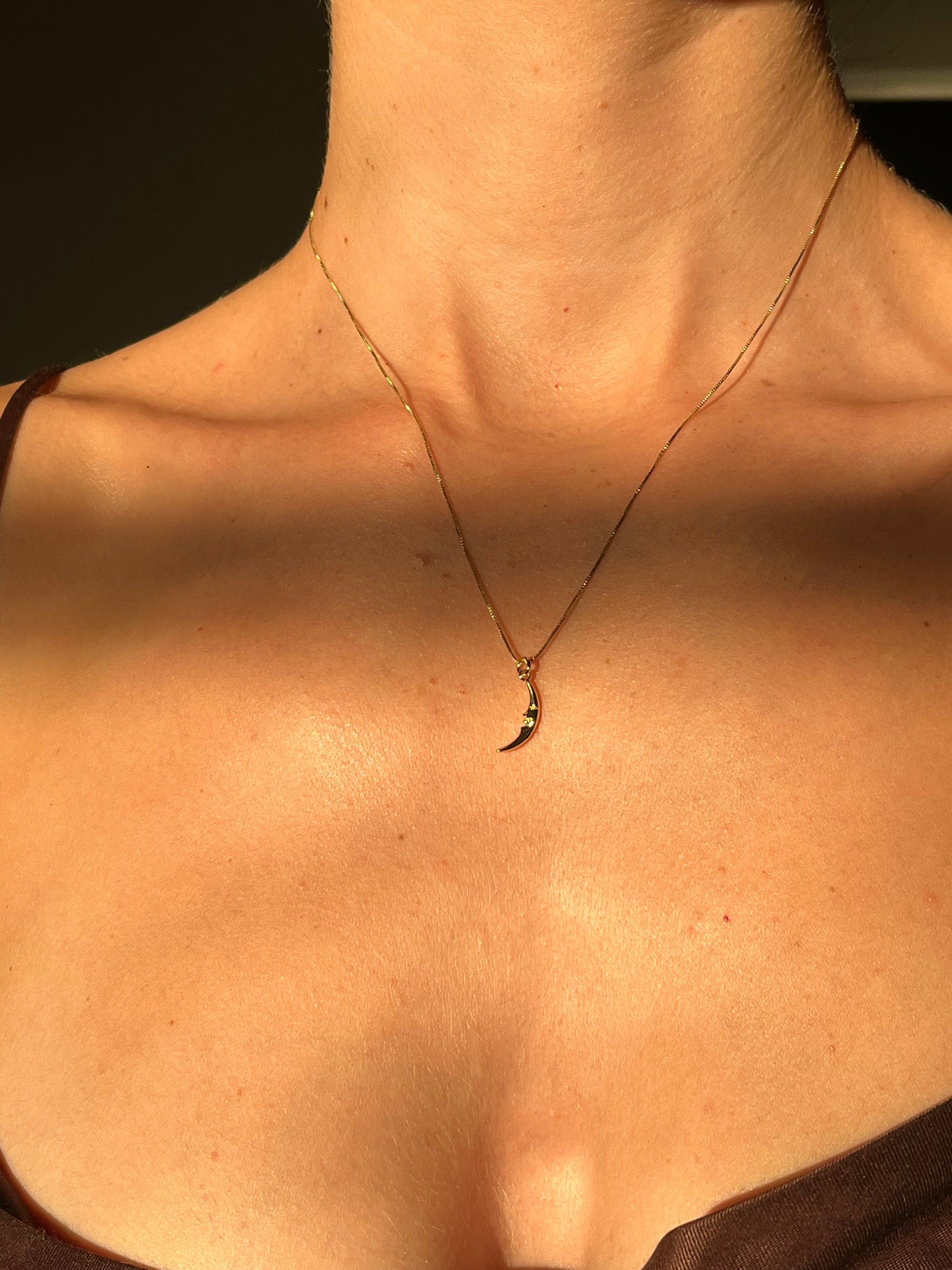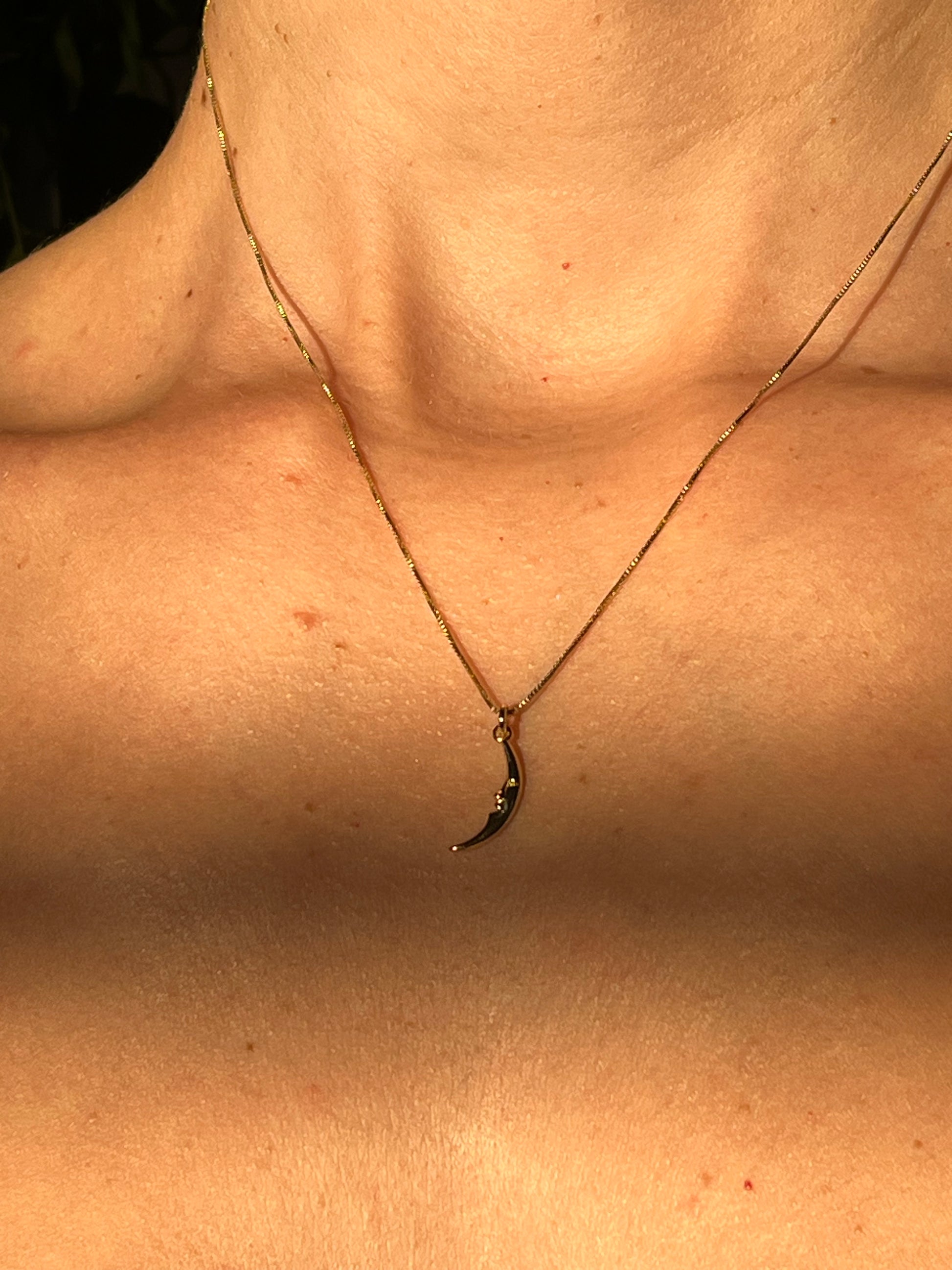 Illuminate your style with our delicate petit crescent moon necklace, delicately crafted and suspended on a fine gold-filled rolo chain, measuring 18 inches in length. Symbolizing intuition and feminine energy, this piece adds a touch of celestial elegance to your everyday look.