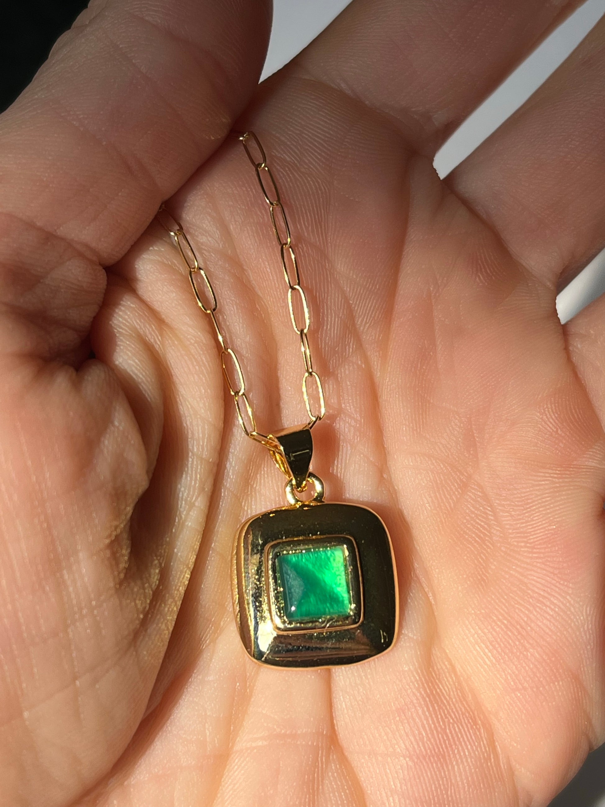 This emerald medallion necklace is meant to be worn for the embodied, the brilliant, the bold and the creative. Exceptional & intrinsically unique, just like you.