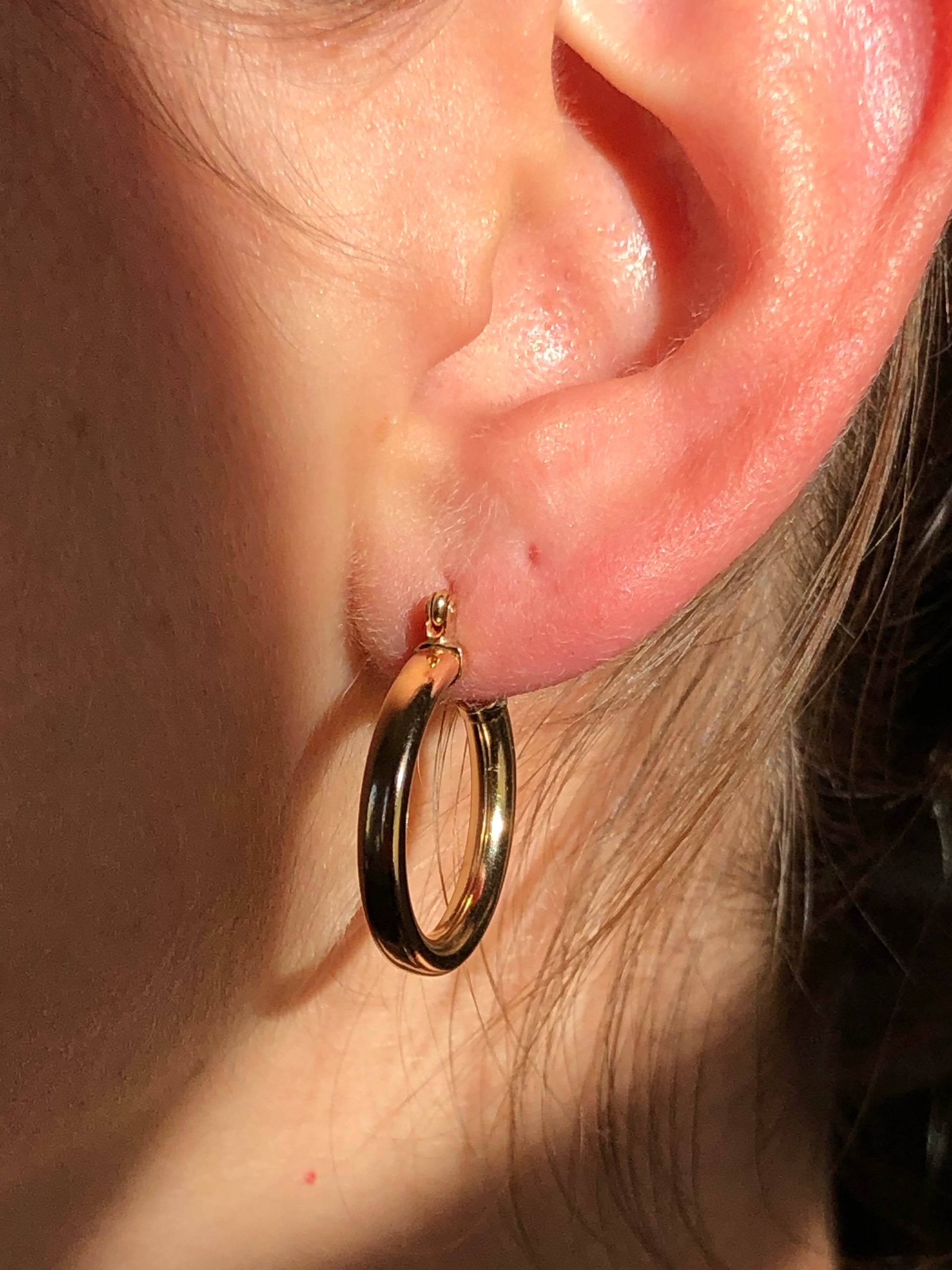 Light weight, a great staple to your jewelry collection. 14 karat gold filled. (22 mm and 1 inch in diameter)