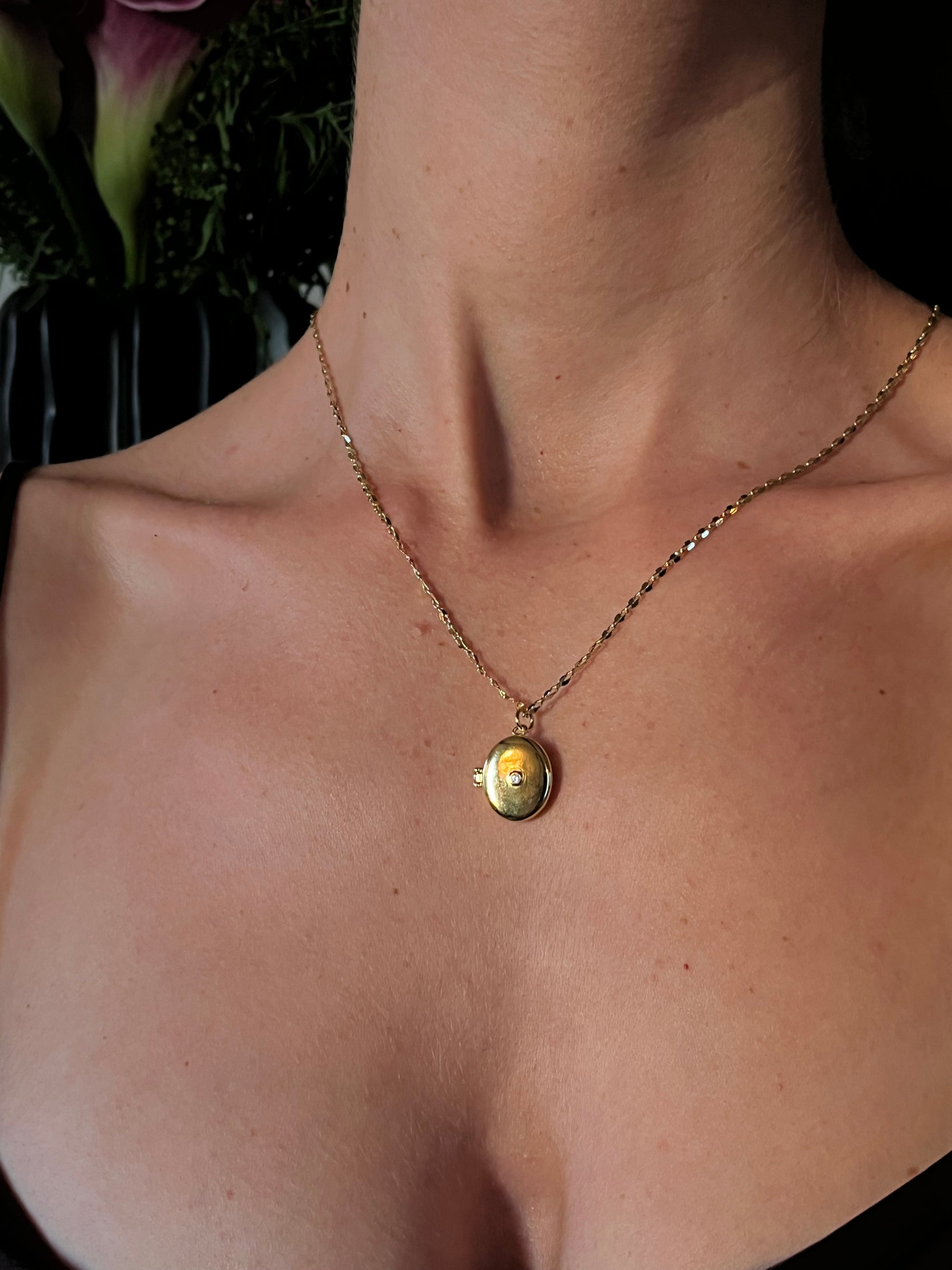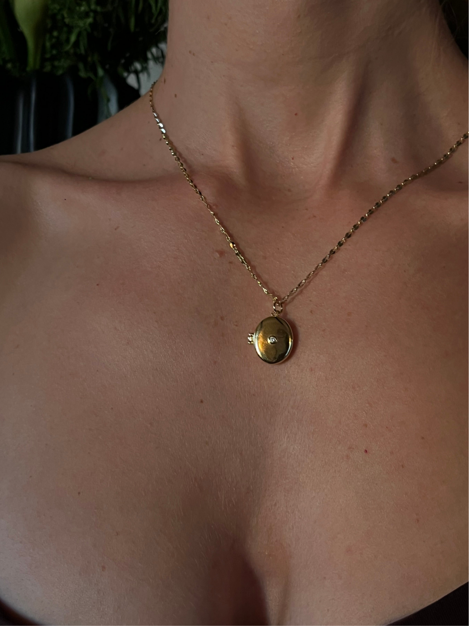 The Margaux Locket Necklace exudes timeless charm with its antique-inspired design. Crafted with intricate detailing, the oval locket opens to hold your most treasured memories close. Suspended on a delicate, lightweight chain, this piece is a perfect blend of elegance and sentimentality, making it an ideal gift or heirloom accessory. Wear it as a subtle statement or layer it for a personalized look that’s uniquely yours.