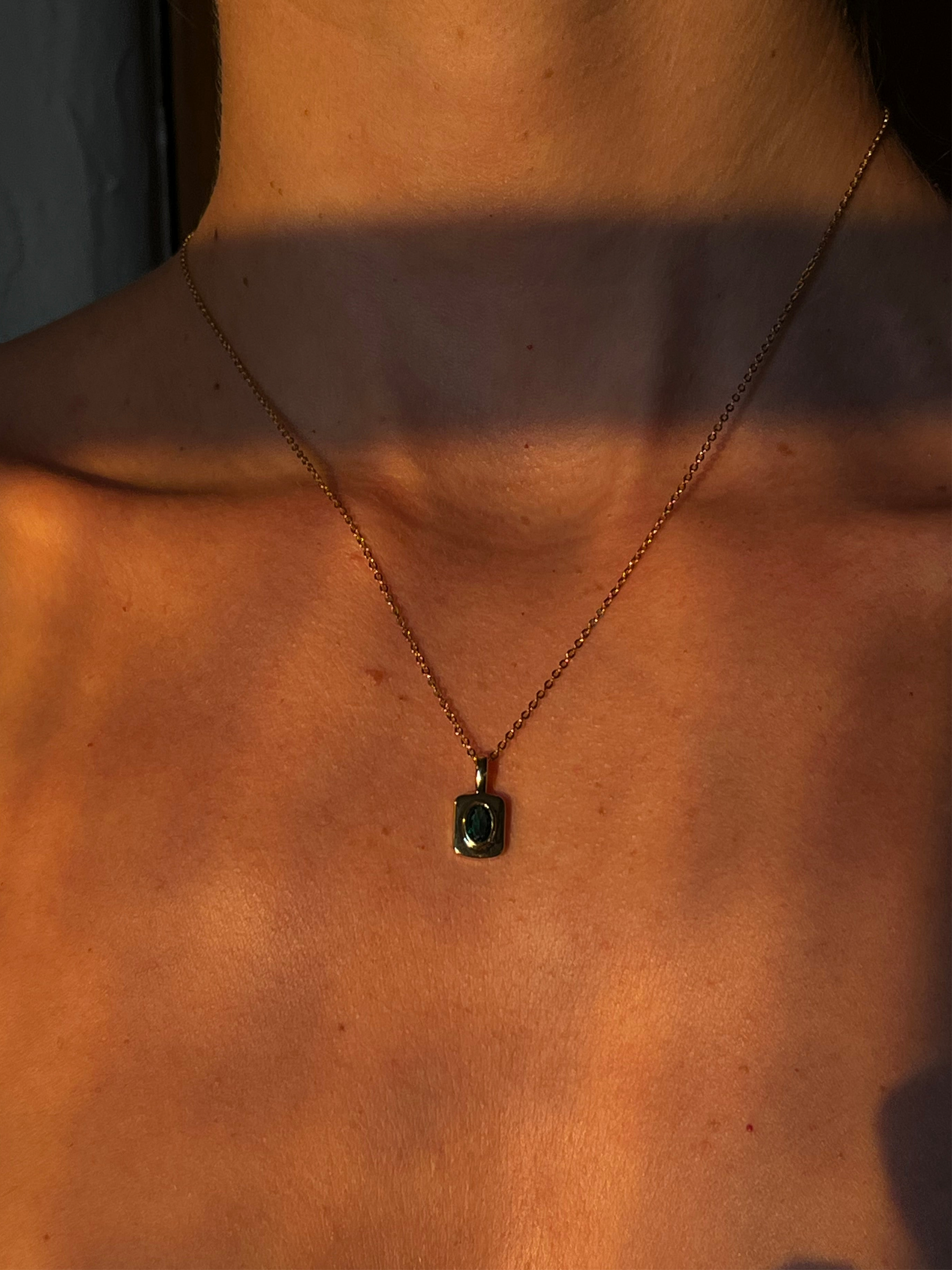 Elevate your everyday jewelry collection with the Nicolette mini emerald necklace, featuring a stunning emerald pendant gracefully hanging from a classic and delicate cuban chain. Channeling timeless glamour and modern edge, the perfect statement for any occasion.